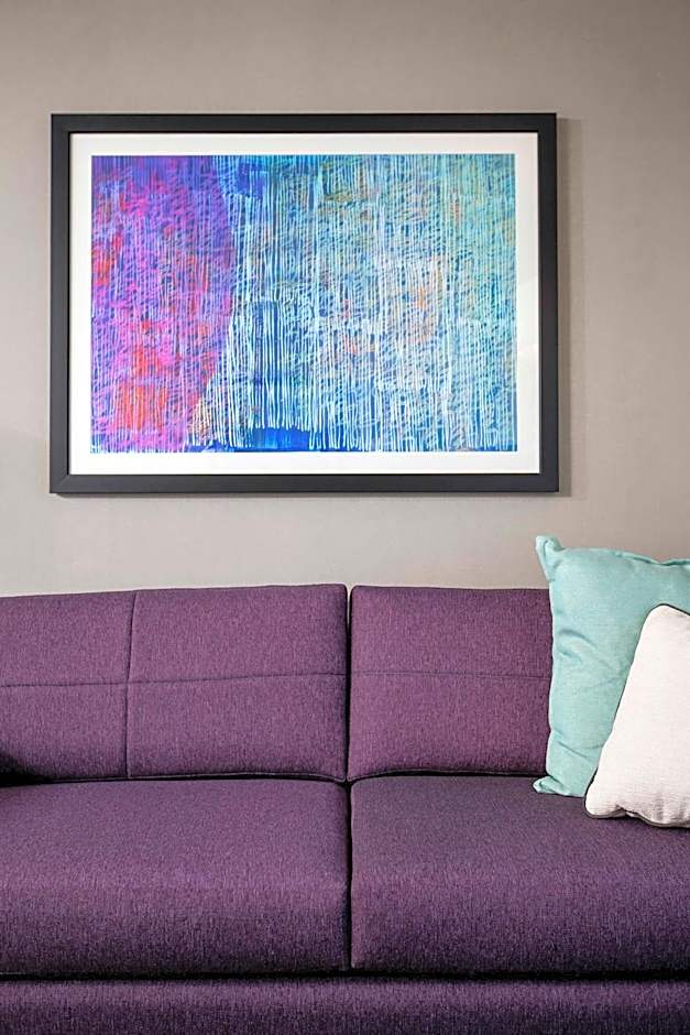 Featuring a curved headboard wrapped around an angled bed, this room offers a sofa bed with a coffee table and complimentary bottled water.